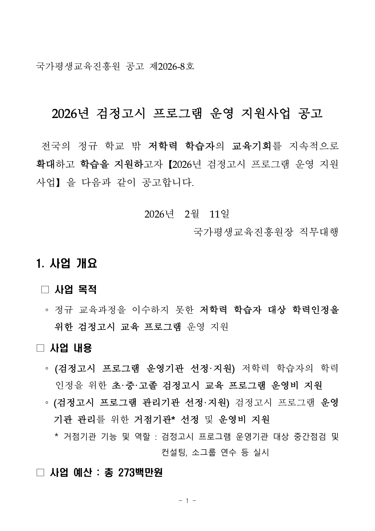 PDF문서2026년 검정고시 프로그램 운영 지원사업 공고문.pdf